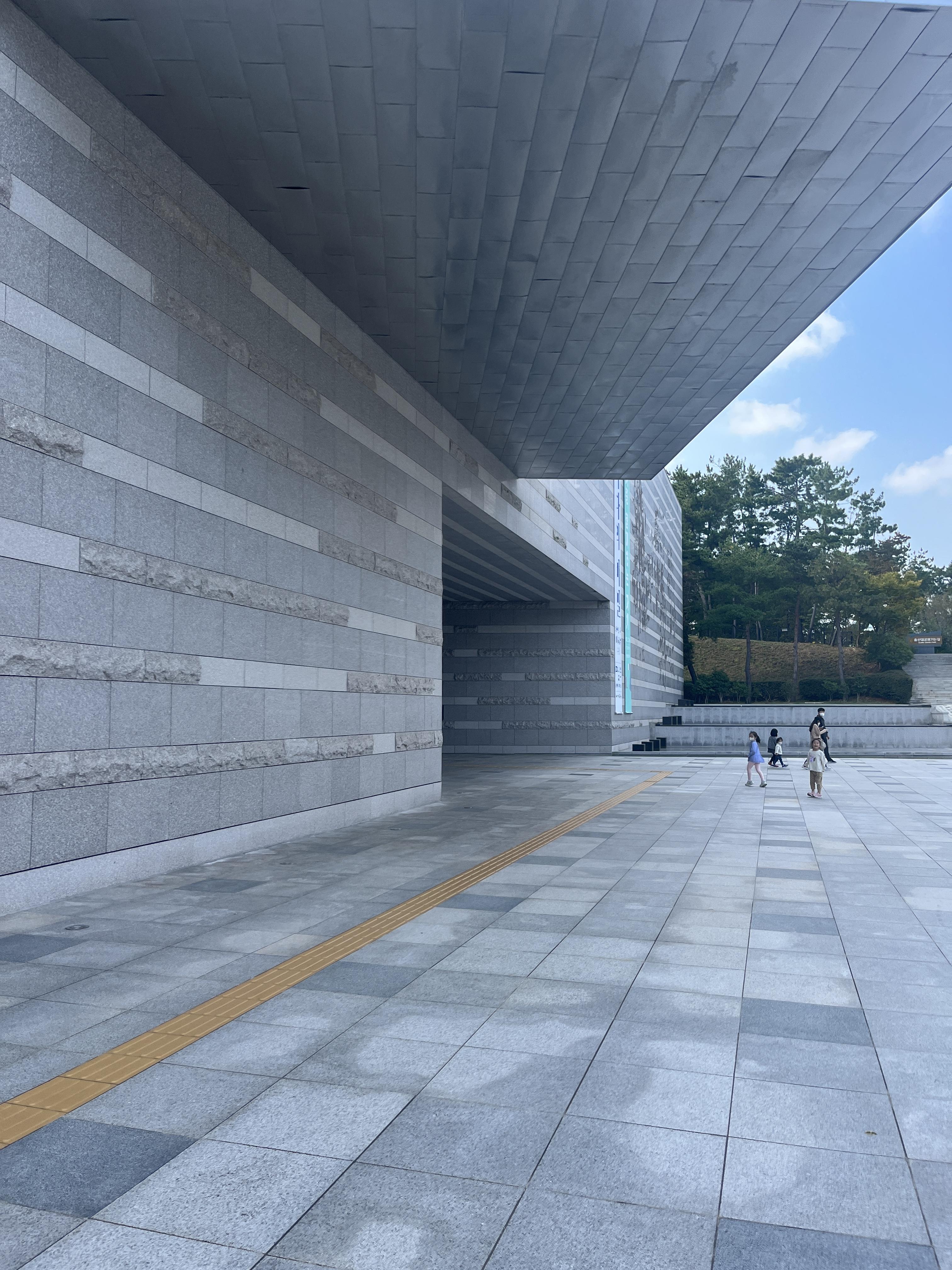 주차장을 지나 멋진 건물의 중앙으로 들어가면